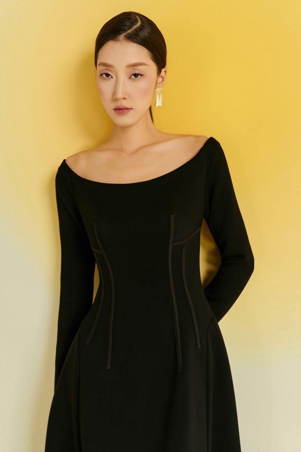 Indulge in luxury with the dress. The delicate off-shoulder design and flowing A-line silhouette create a sophisticated look. Crafted from a premium cotton blend, this dress offers both style and comfort. Elevate your wardrobe with this elegant and exclusive piece.