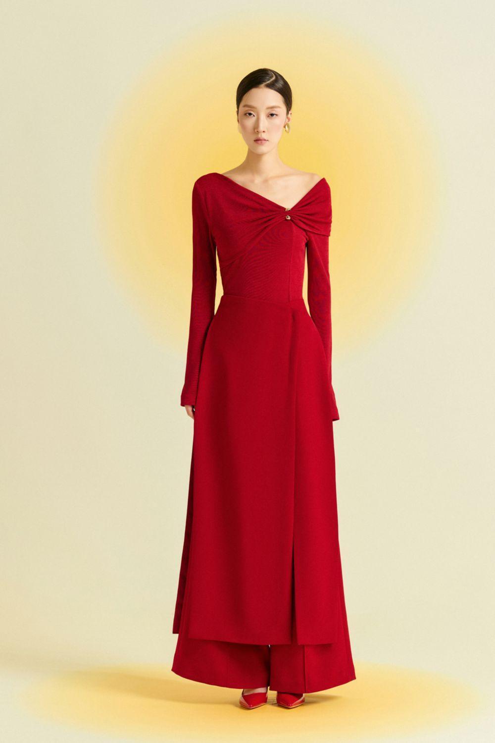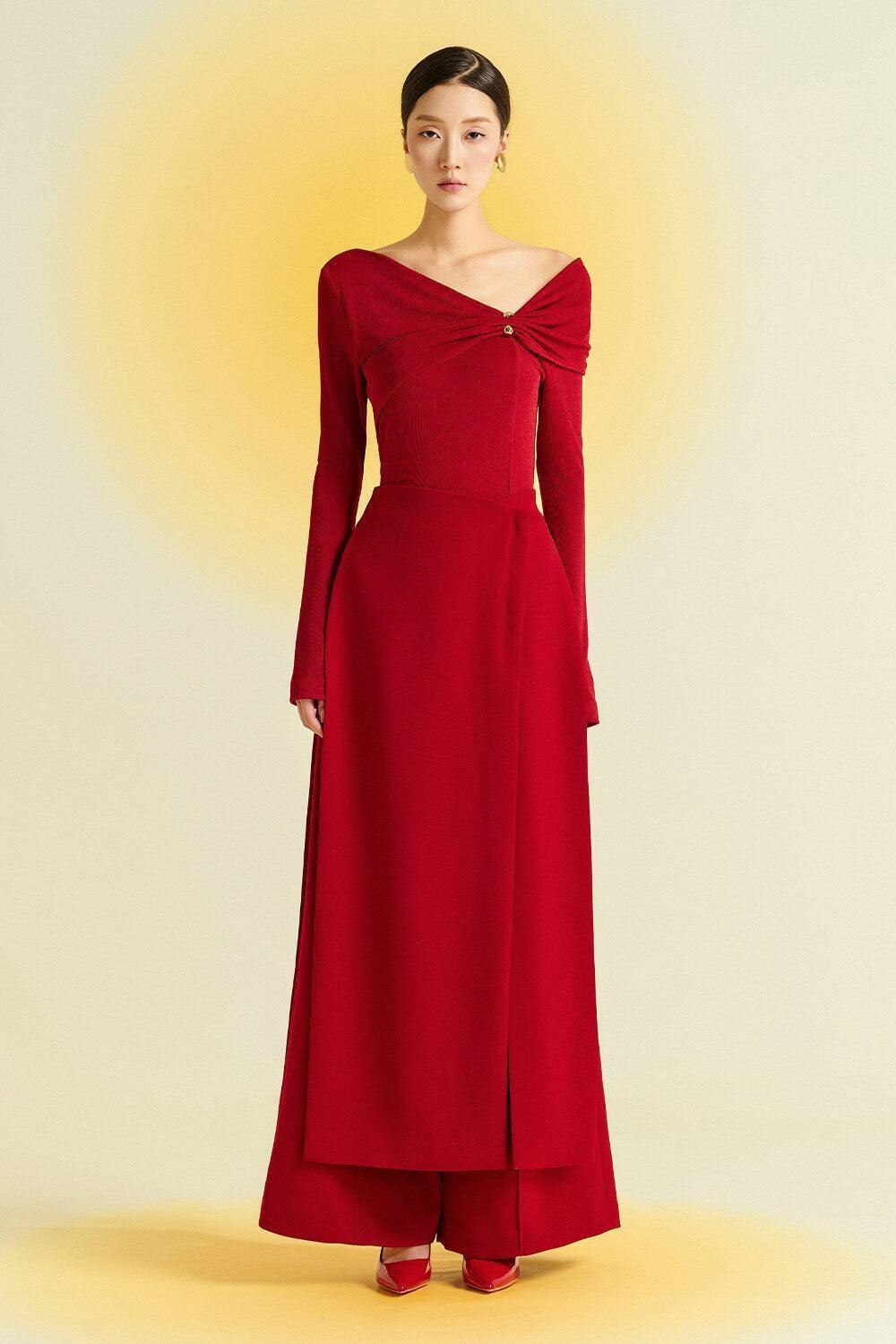 Ngoc An Straight Front Slit Polycotton Ankle Length Accessories