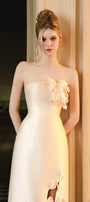 Flower applique on the chest, Flower cut-out on the lower skirt, Dart lines