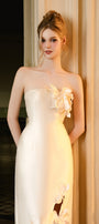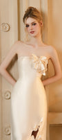 Elevate your style with the midi dress, where bold design meets delicate detail. Featuring intricate flower appliques and daring cut-out accents, this dress highlights your silhouette with sharp dart lines that sculpt and define. Made from lustrous taffeta, it delivers both structure and elegance for an unforgettable presence at every event.