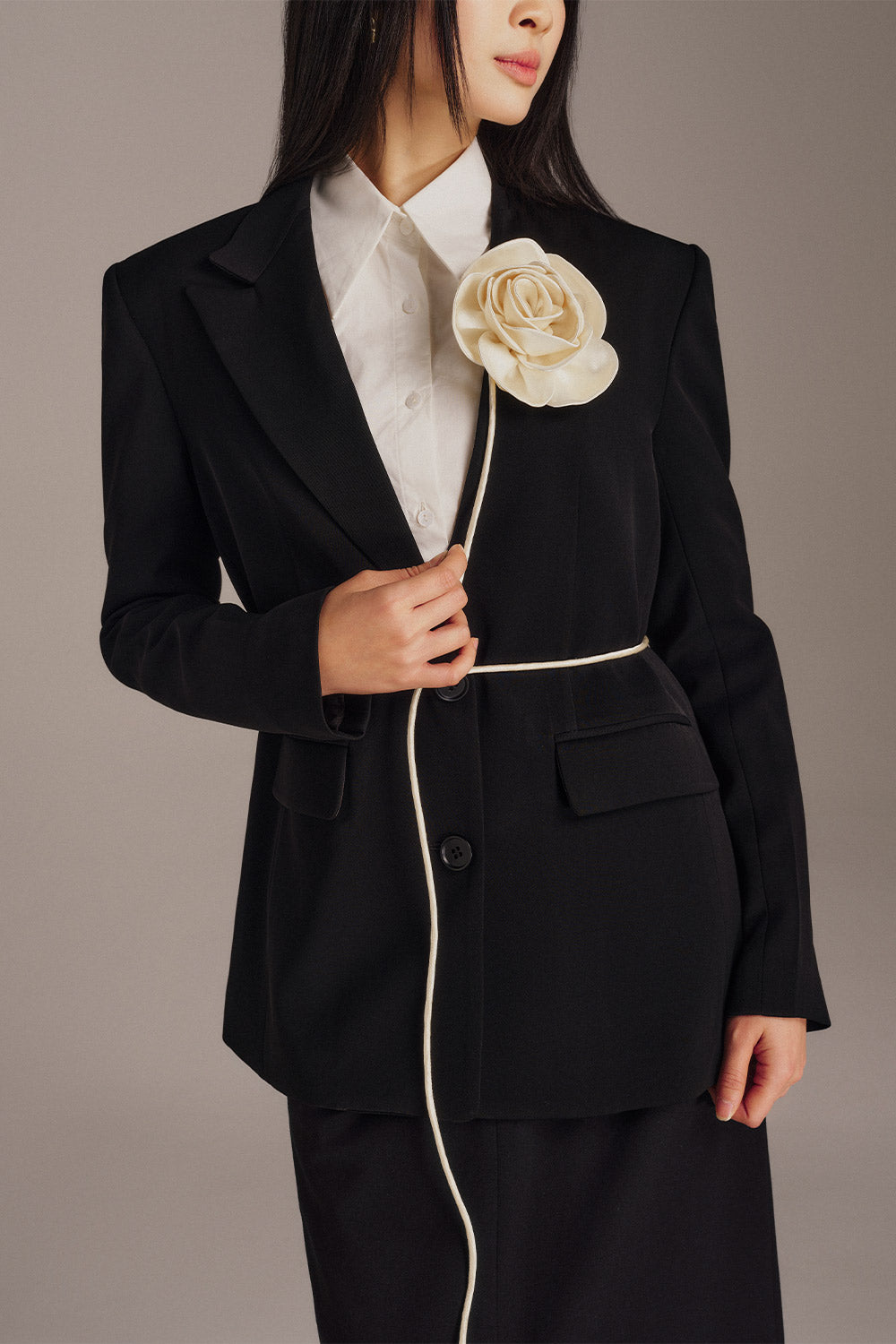 The classic straight notch lapel adds a touch of sophistication to any outfit, making you look sharp and put-together. Perfect for any formal or business setting, this blazer is a timeless essential for any fashion-forward individual.
