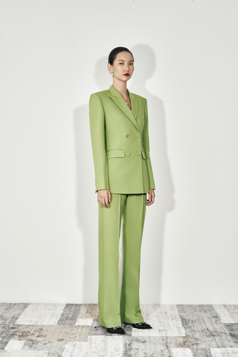 Special Features: Double breasted, Peak lapel, Square shoulder, Back slit