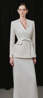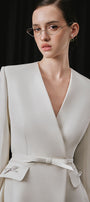 Expertly crafted with a crossover front flap and a mix white bow belt, the blazer exudes sophistication. Elevate your wardrobe with this versatile piece, perfect for business or casual wear.