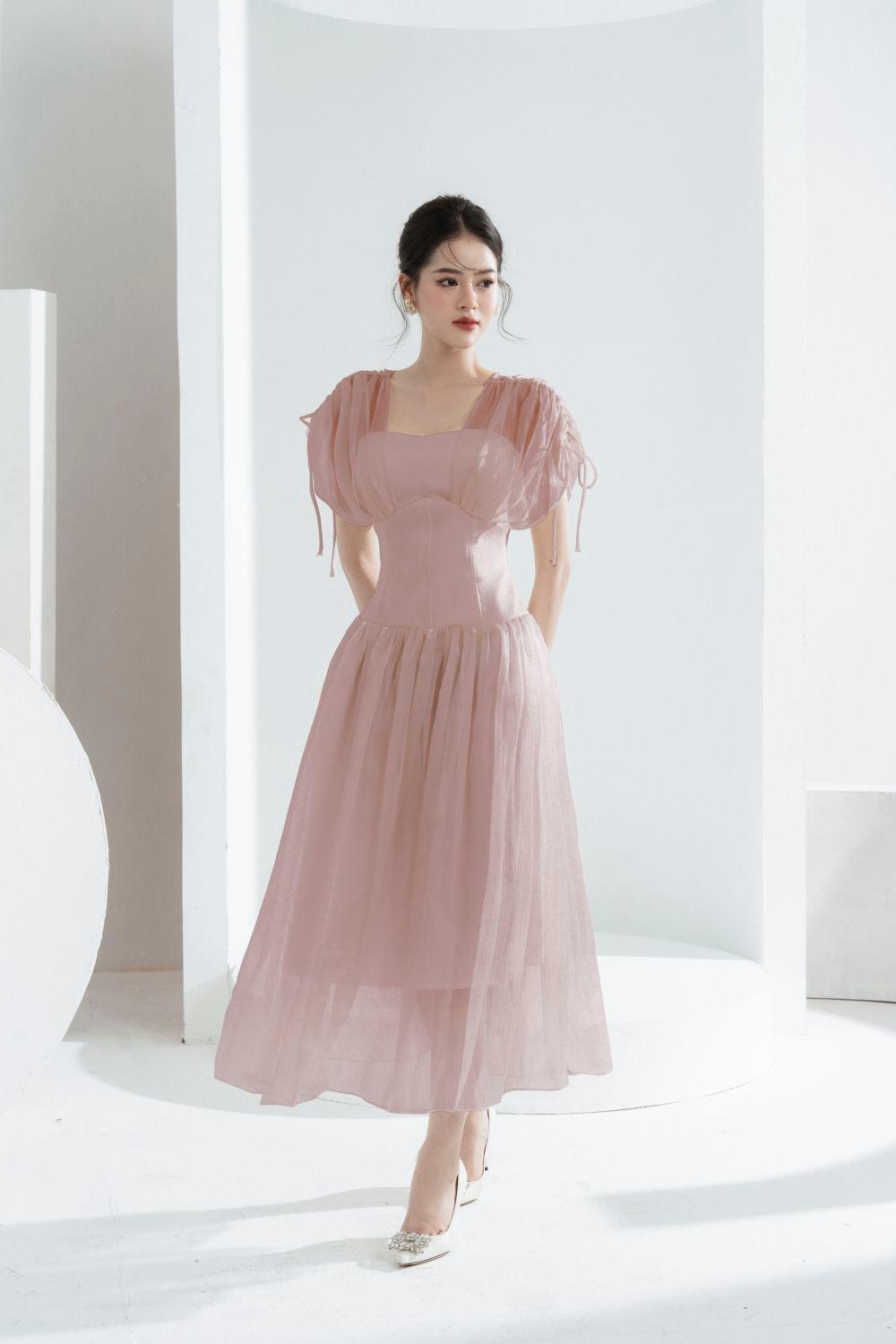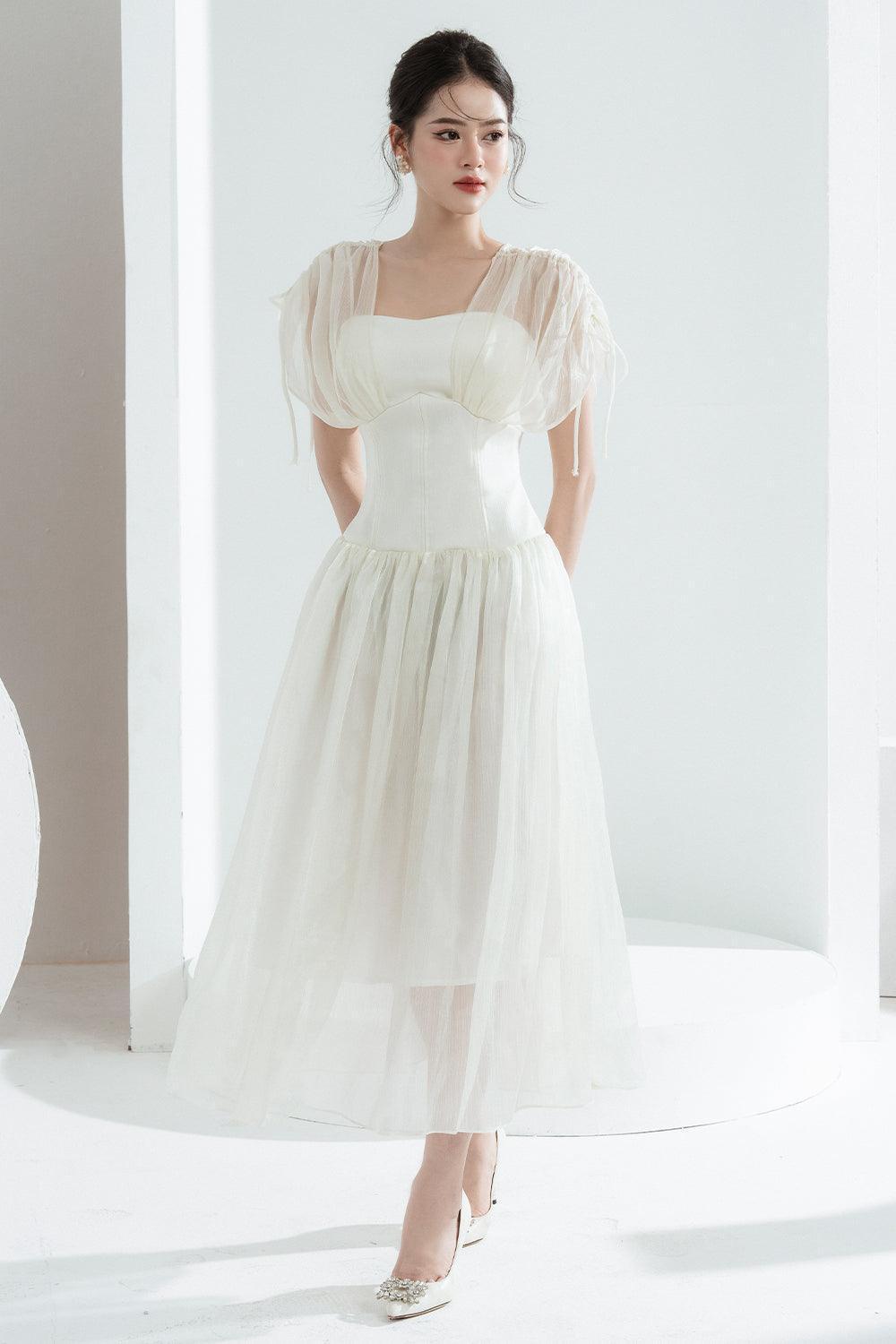 Melya A-line Corset Waist Chiffon Midi Dress