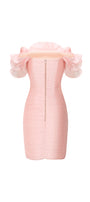 Showcase elegance in this bodycon mini dress, tailored from organza for a luxurious feel. Featuring a striking off-shoulder neckline, voluminous puff sleeves, delicate gathering, and romantic ruffle embellishments. Perfect for cocktail parties, date nights, or upscale events.