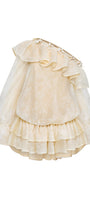 Elevate your style with this expert-crafted babydoll mini dress, featuring an asymmetric neckline, dramatic bell sleeves, and delicate organza ruffles adorned with elegant applique. Ideal for cocktail parties, evening events, or any occasion where sophistication is key.