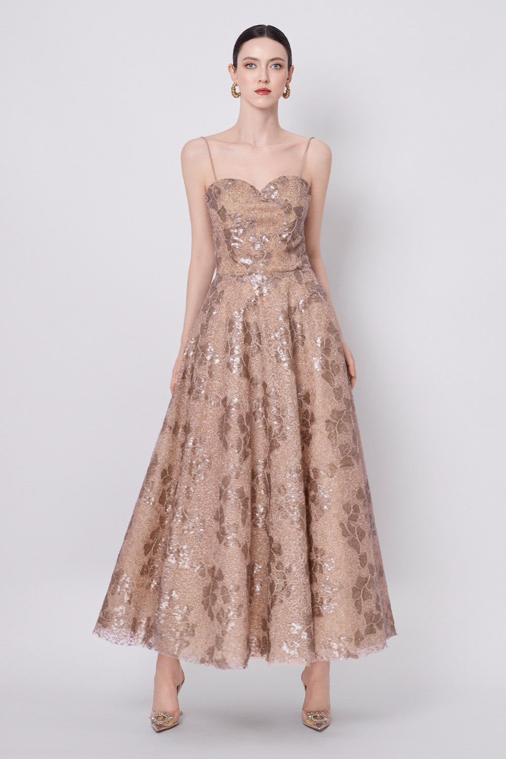 Stardust A-line Sweetheart Neck Lace Maxi Dress