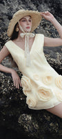 3D floral applique at the bottom, Sheer effect, Gathered neckline design
