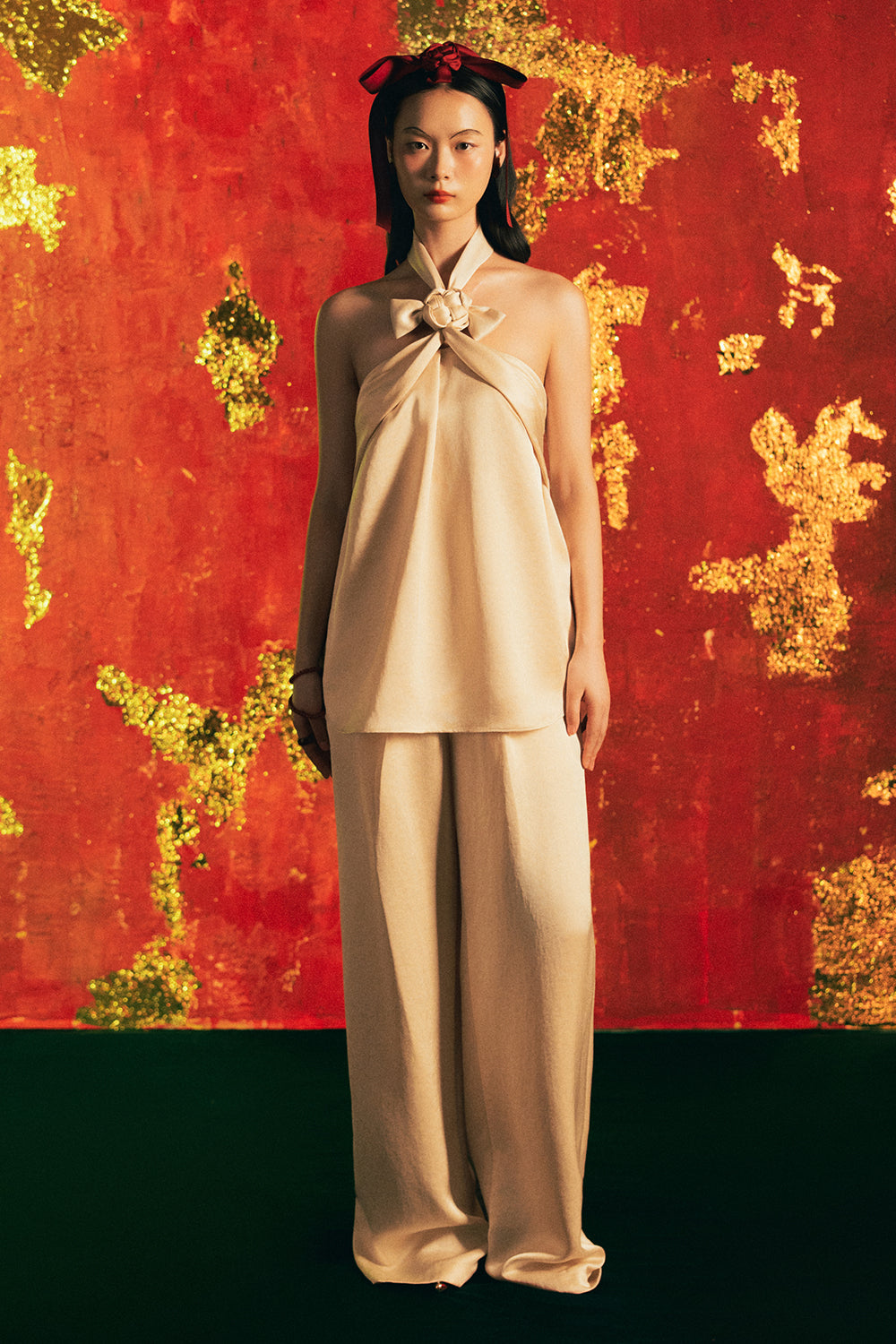 Cat Tuong Halter Neck Synthetic Silk Set