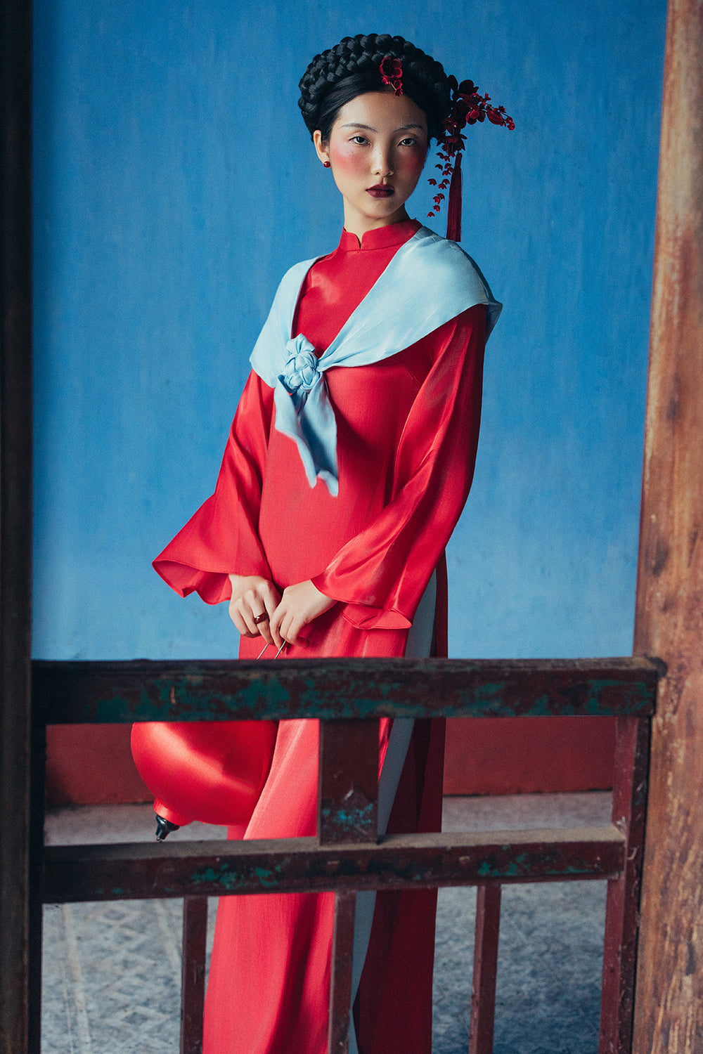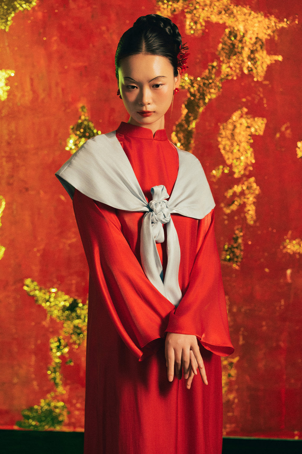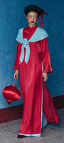 Embrace timeless elegance with a modern twist in this stunning Ao Dai set, featuring a refined mandarin neck that channels classic Vietnamese sophistication. Crafted from luxurious synthetic silk, this ensemble arrives complete with a coordinating scarf—your instant accessory solution. The straight silhouette flatters effortlessly, creating a graceful line that works for celebrations, cultural events, or whenever you want to feel absolutely radiant. Pair it with your favorite heels and let the fluid fabric do the talking.
