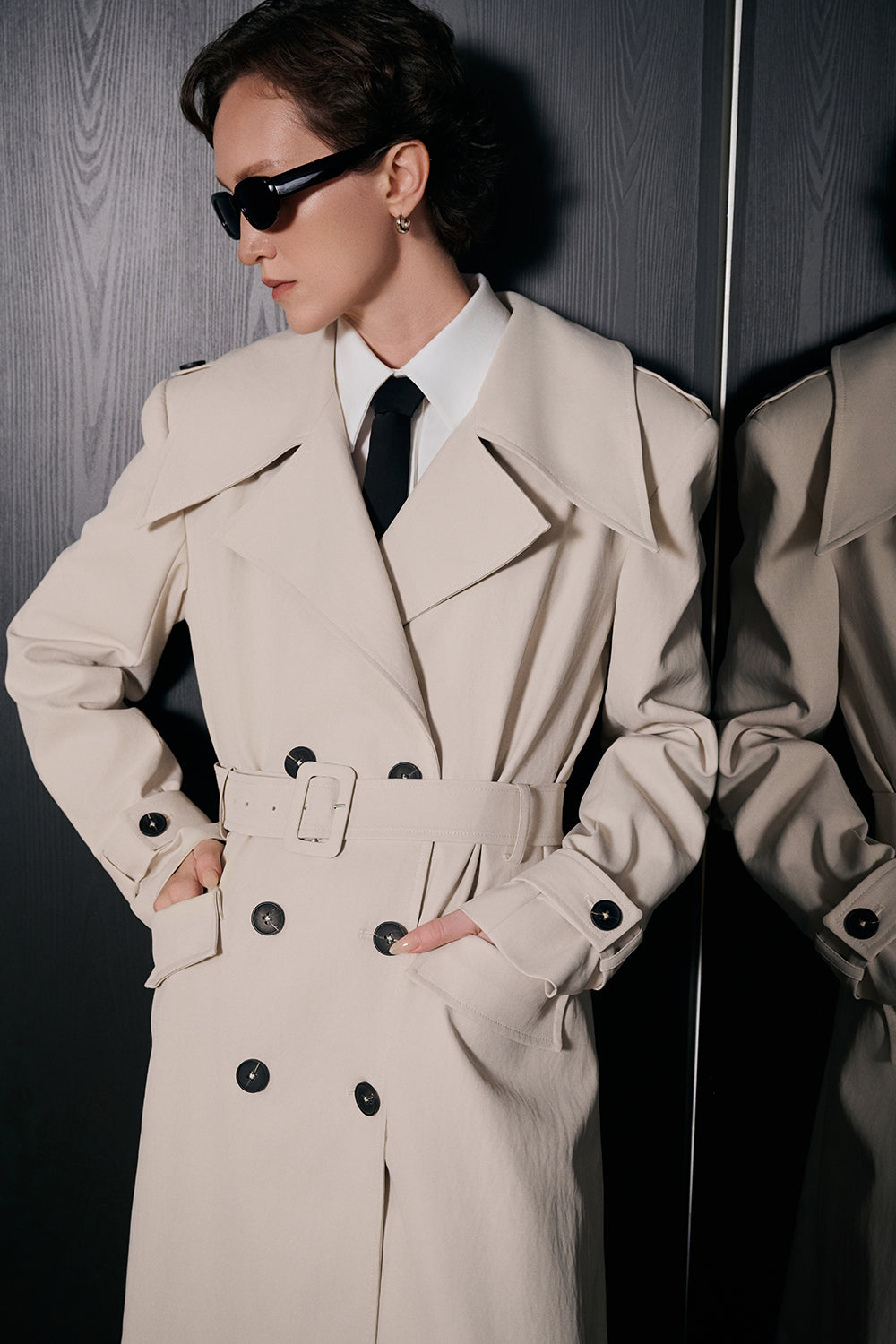 Elevate your wardrobe with this expertly crafted straight silhouette trench coat in premium cotton. Featuring a classic collared neck, regular sleeves, and refined button embellishments, it delivers timeless elegance. Perfect for business meetings, social gatherings, or layered casual wear.