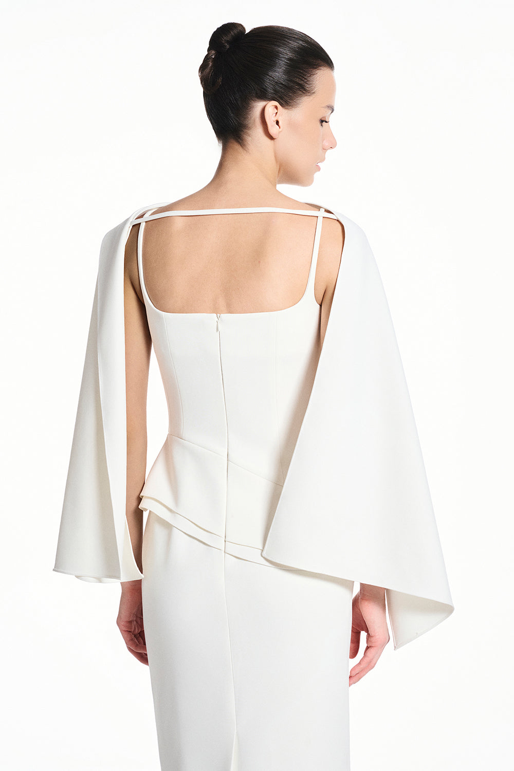 Elevate your look with this expertly crafted peplum maxi dress, featuring an asymmetric neck and sleeve, refined draped details, and a luxe spandex fabrication. Ideal for formal events, evening gatherings, or upscale parties where sophistication meets modern style.