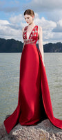 This dress is the epitome of elegance. The sleek sheath design flatters every body shape, while the plunge neckline adds a touch of allure. Made from high-quality taffeta fabric, this dress is sure to make a statement at any formal event.