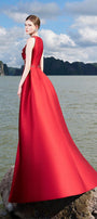 Carthy Sheath Plunge Neck Taffeta Floor Length Dress