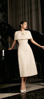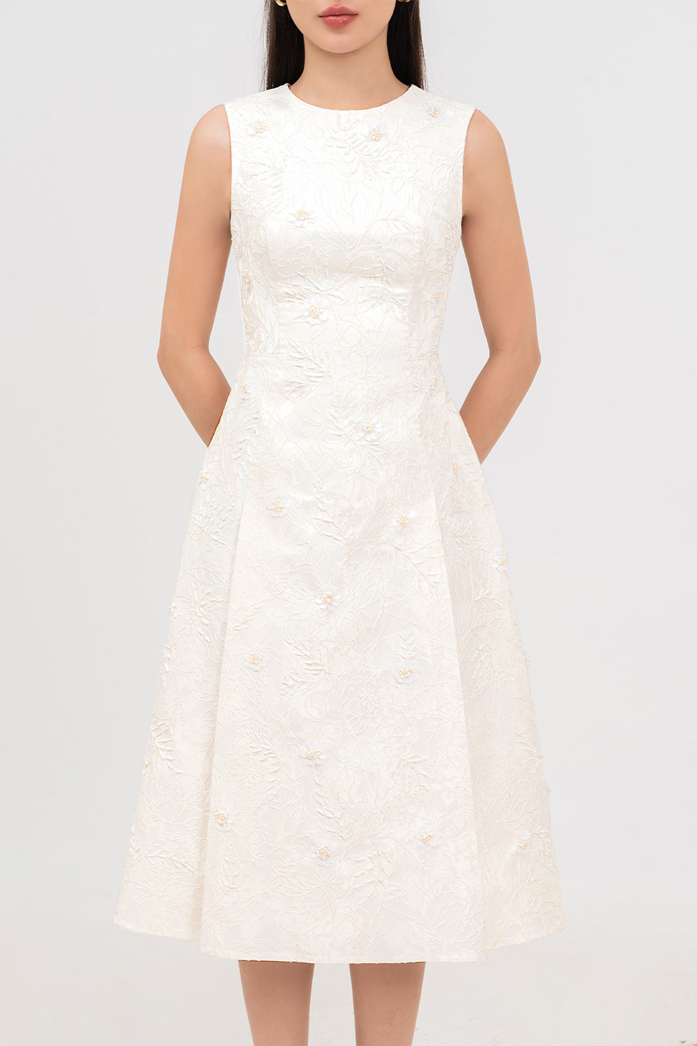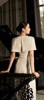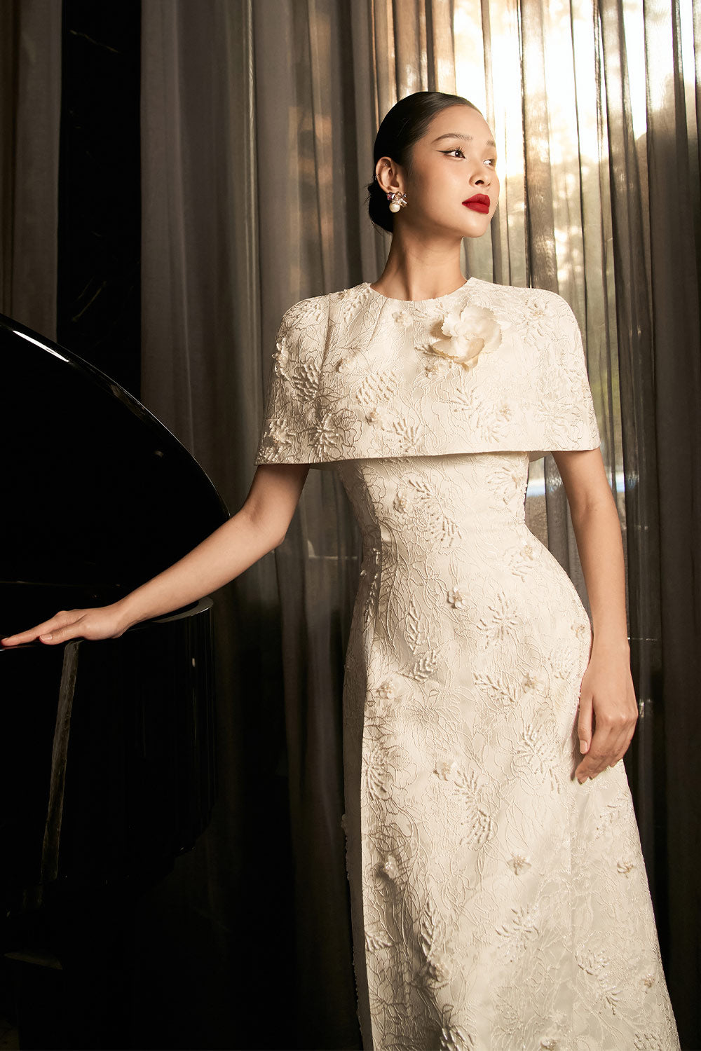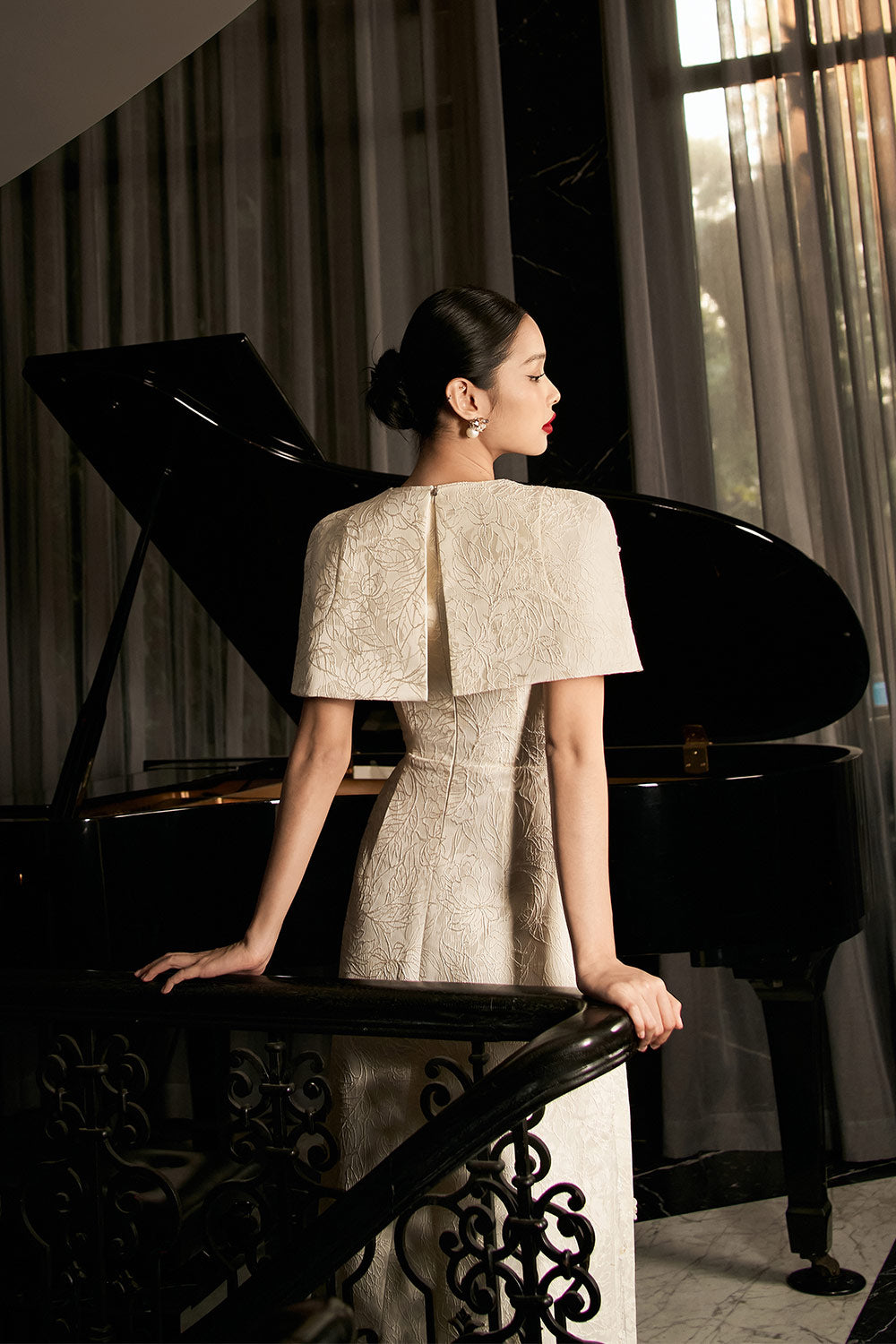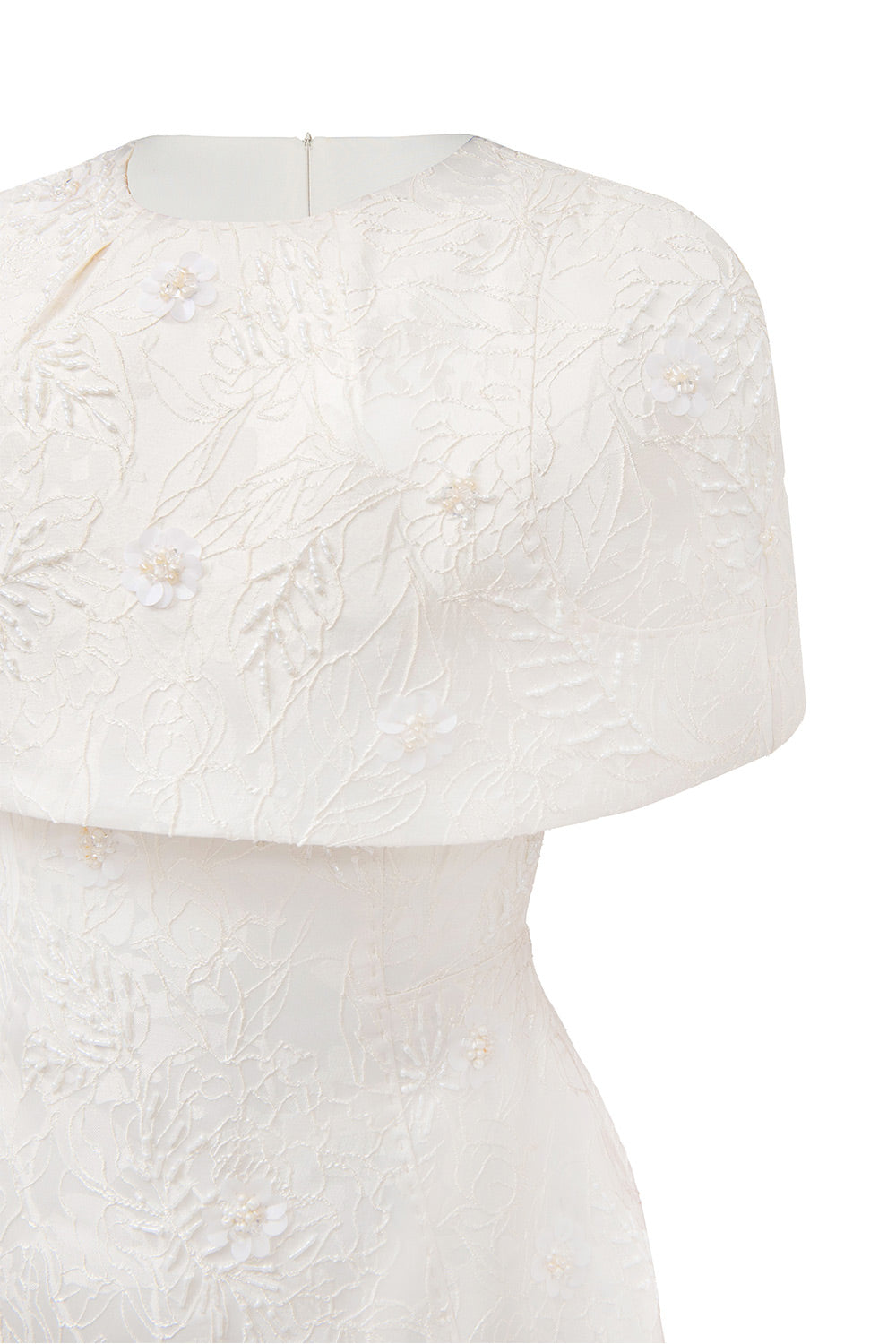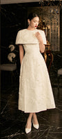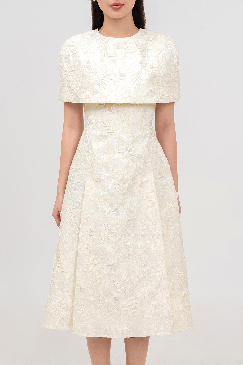 Sophia A-line Cape Shoulder Jacquard Calf Length Dress