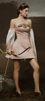 Special Features: Decorative medallion brooch at the chest, Chiffon off-shoulder slit sleeves, Corset waist