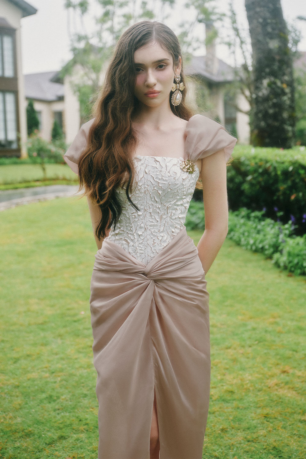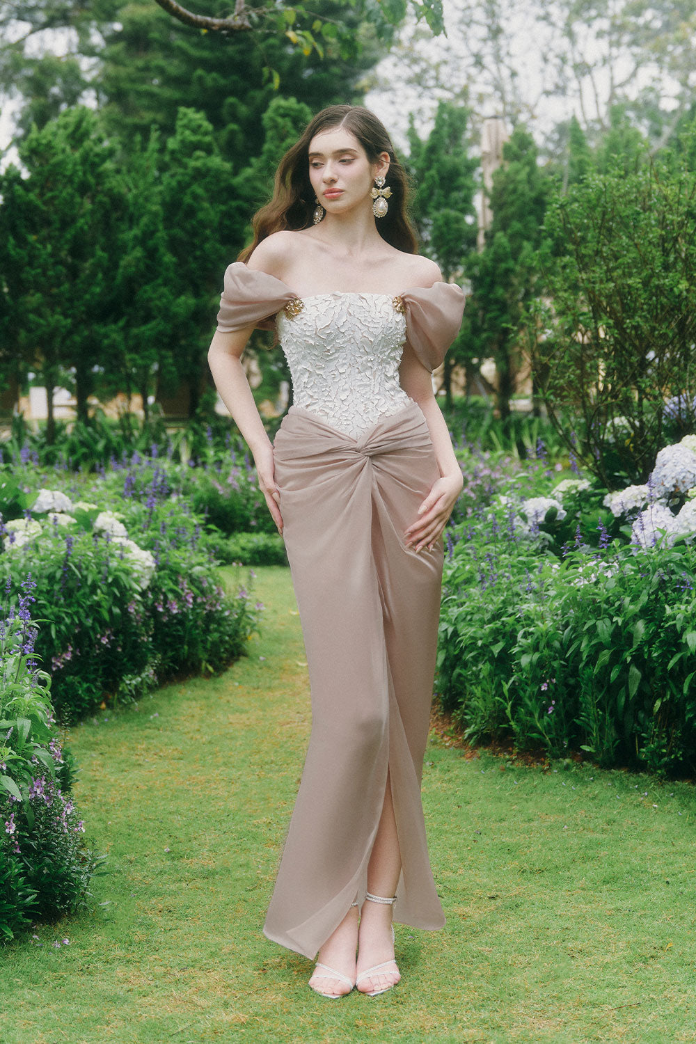 Gladys Sarong Straight Across Neck Chiffon Ankle Length Dress