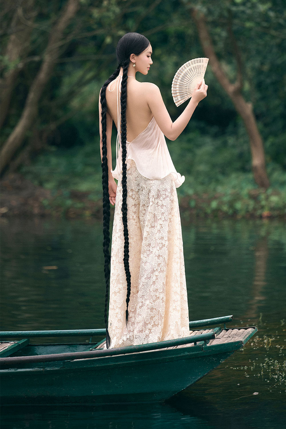 Thanh Di Halter Pleated Organza Top