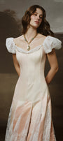 Indulge in pure elegance with our dress. This dress exudes a romantic, demure and delicate charm that is perfect for any special occasion. The graceful silhouette, ladylike details, and feminine lace add a touch of regency to your wardrobe. With soft fabric and puffy sleeves, this dress offers both comfort and style in one.