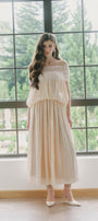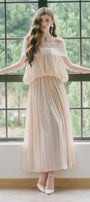 Designed with a breezy chiffon fabric, this dress features a trendy off-shoulder design and a flattering midi length. Perfect for any occasion, this dress combines comfort and style for a versatile wardrobe staple.