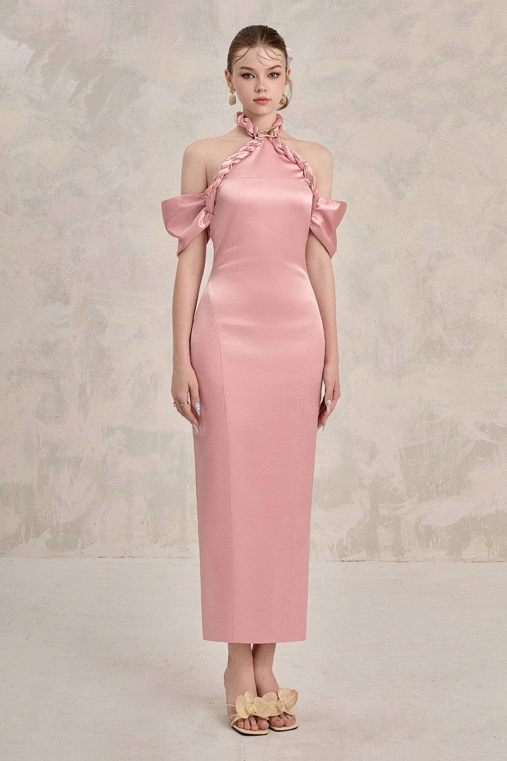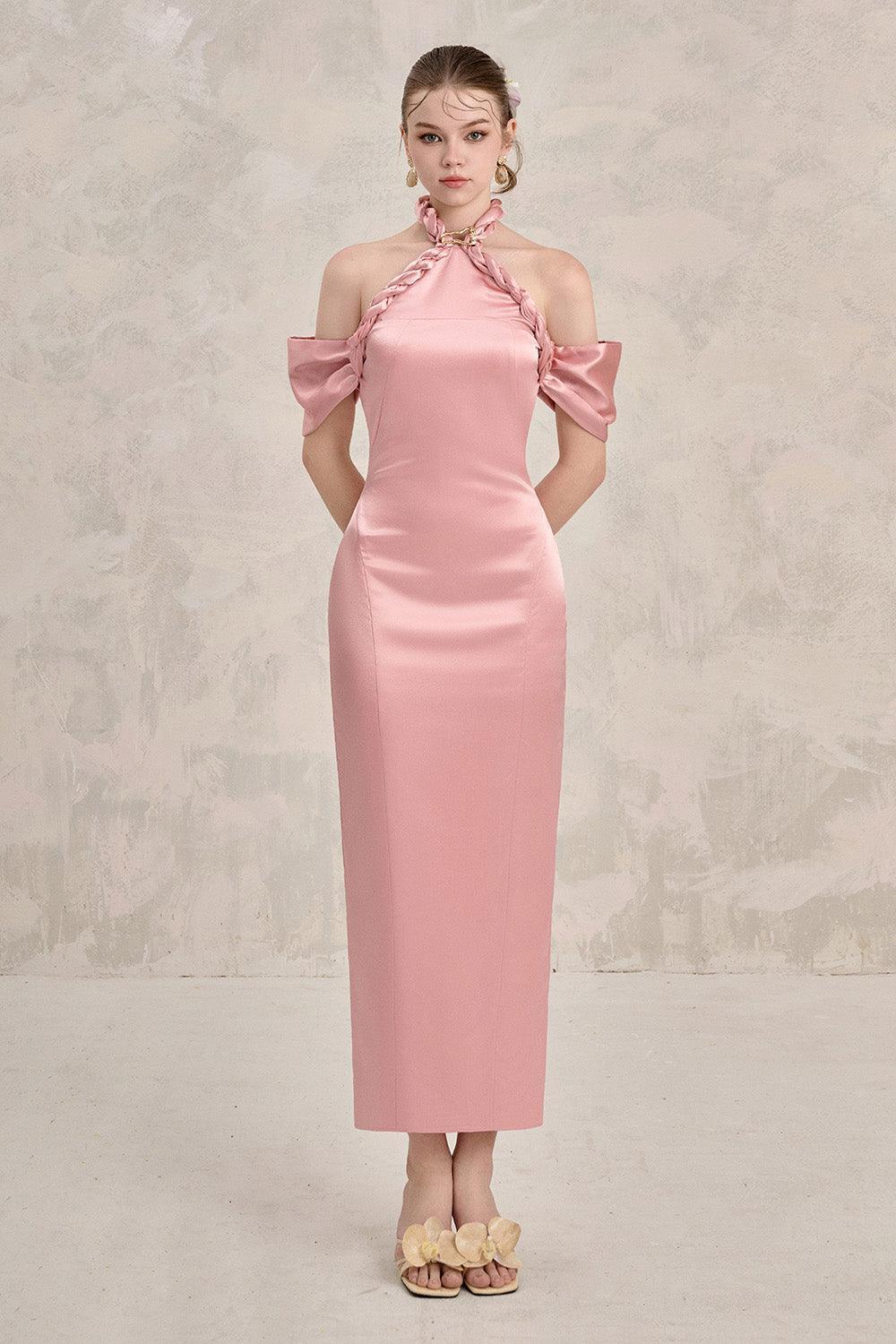 Avara Sheath Cold Shoulder Sleeved Silk Ankle Length Dress