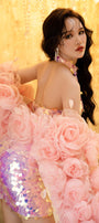 Corset lacing at the back, Padded bust, Cut-out at waist with mesh
