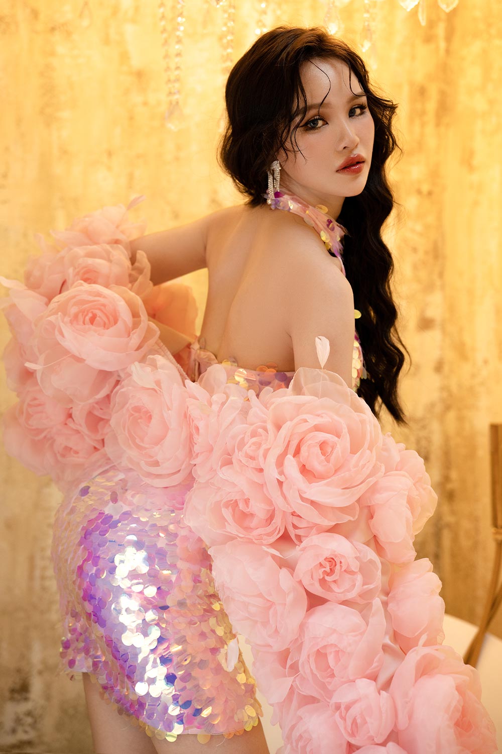 This stunning dress features a body-hugging fit and an open back design, perfect for highlighting your curves. The all-over sequin detail adds a touch of glamour, making it the perfect choice for a night out. Get ready to turn heads and feel confident in this statement piece.