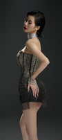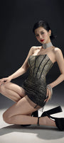Expertly designed for a sleek and flattering fit, this dress features a stylish scoop neck and eye-catching mesh sequin detailing. Perfect for any special occasion, this dress will have you feeling confident and elegant all night long. Don't miss out on this must-have piece for your wardrobe.