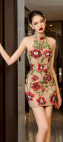 Velvet Affair Bodycon Floral Mesh Mini Dress