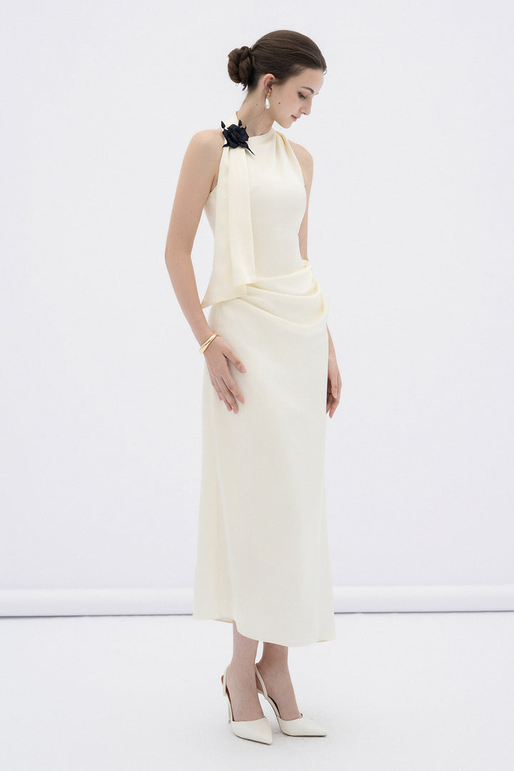 特殊功能 Halter scarf neck with long flap on the front, Draped detail on the side, Asymmetric hem, Inelastic