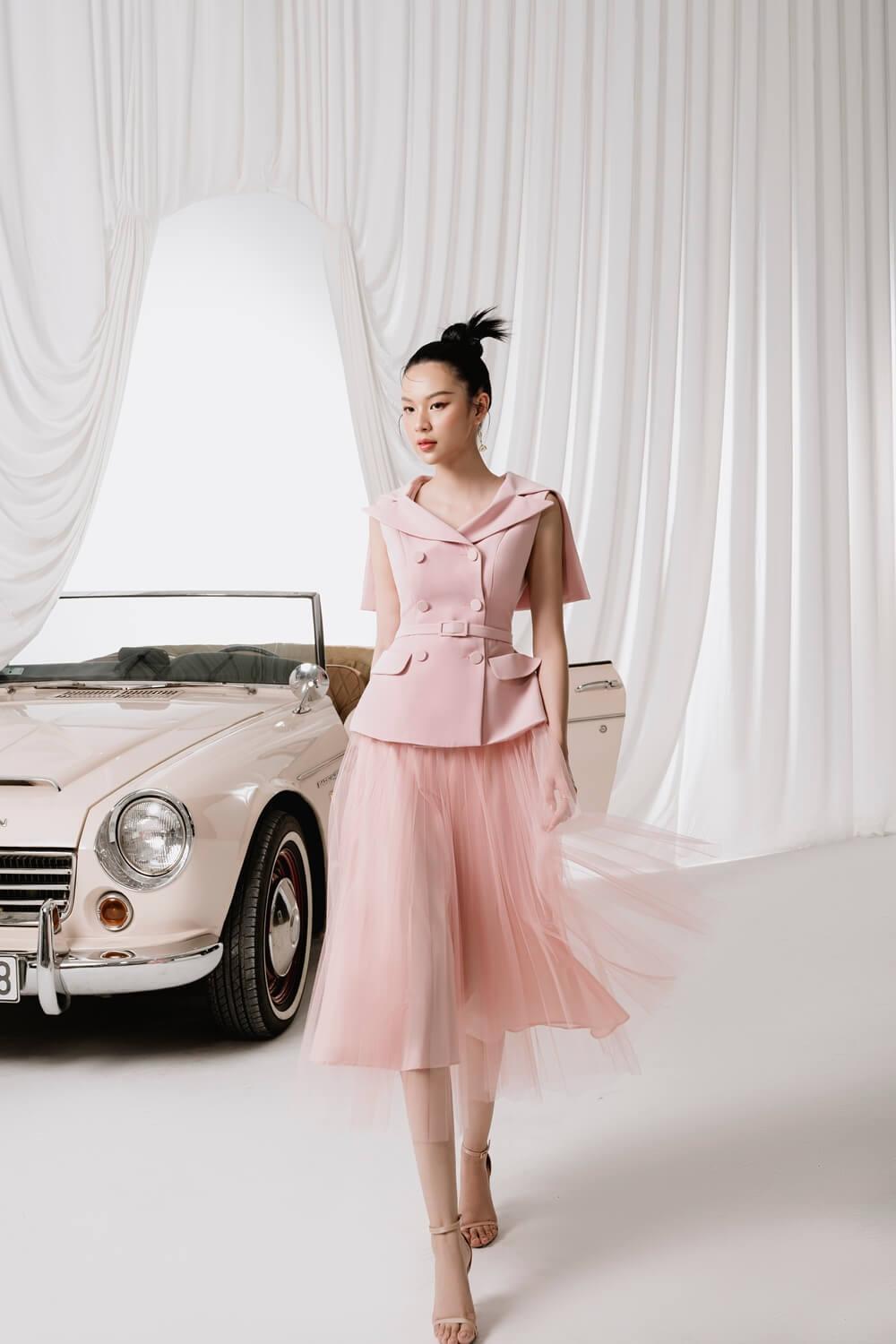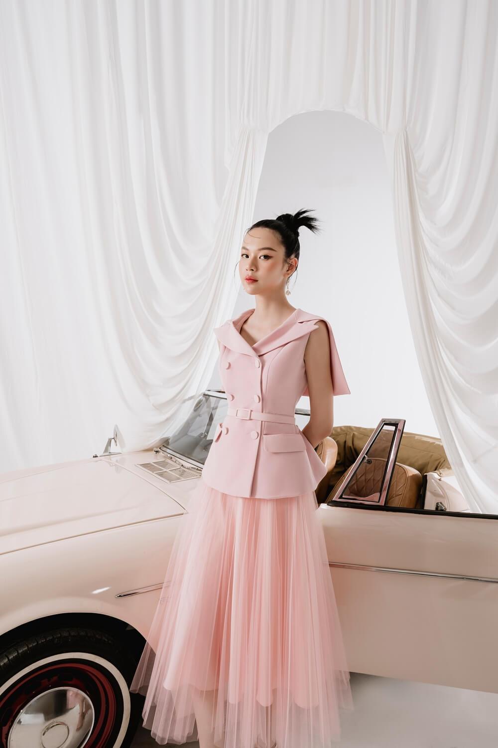 The top is a great combination of elegance and youthfulness that exudes the breath of modernity. On a gentle pink tone background, a high-quality diamond spandex material is used skillfully to enhance the trendiness of the wearer.