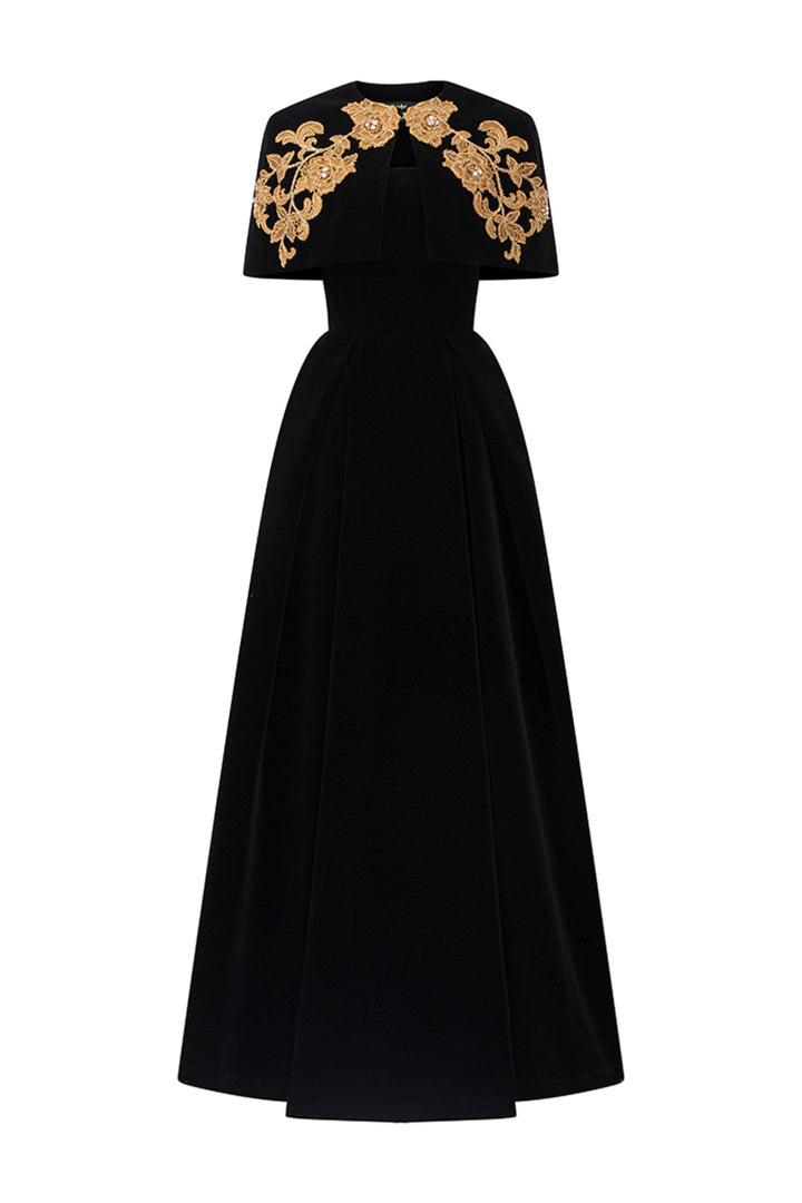 Crystal Ball Gown Embroidered Velvet Floor Length Set