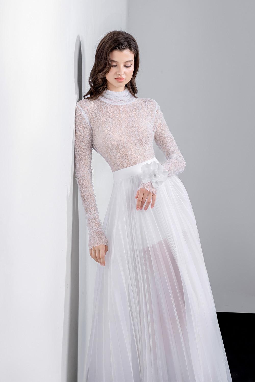 This skirt combines elegant design with a flattering silhouette. The pleated high waist creates a slimming effect while the mesh silk material adds a touch of luxury. With its versatile style, this skirt is perfect for any occasion.