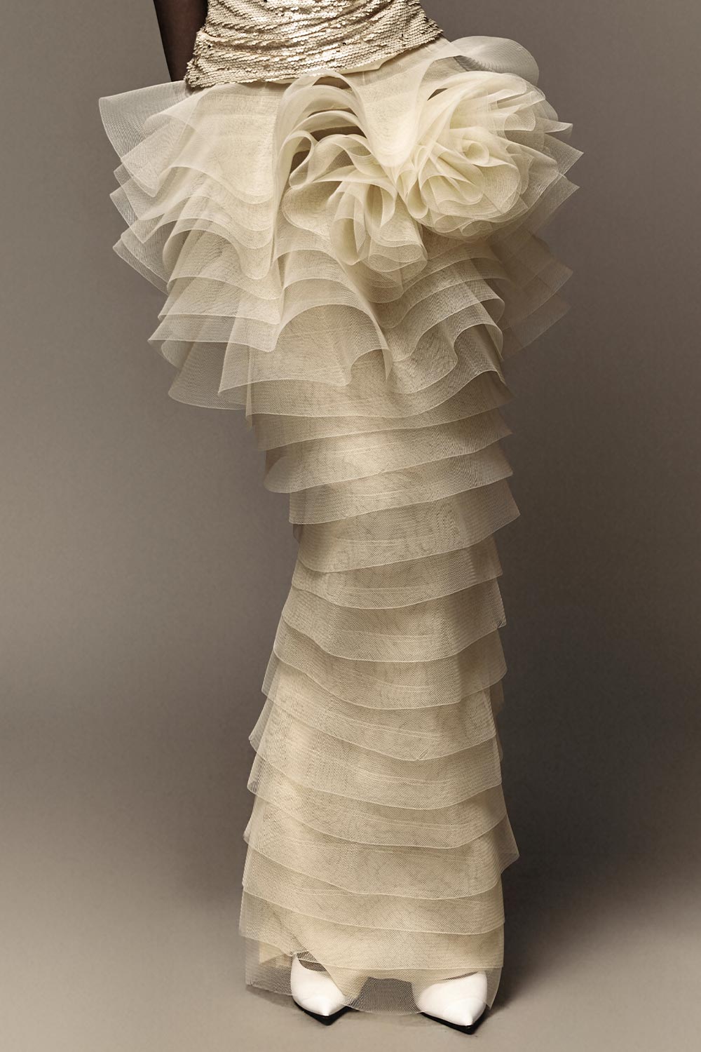Crafted with high-quality mesh and a flattering peplum design, this skirt is a versatile addition to your wardrobe. With its flowing layers and elegant silhouette, it's perfect for any occasion.