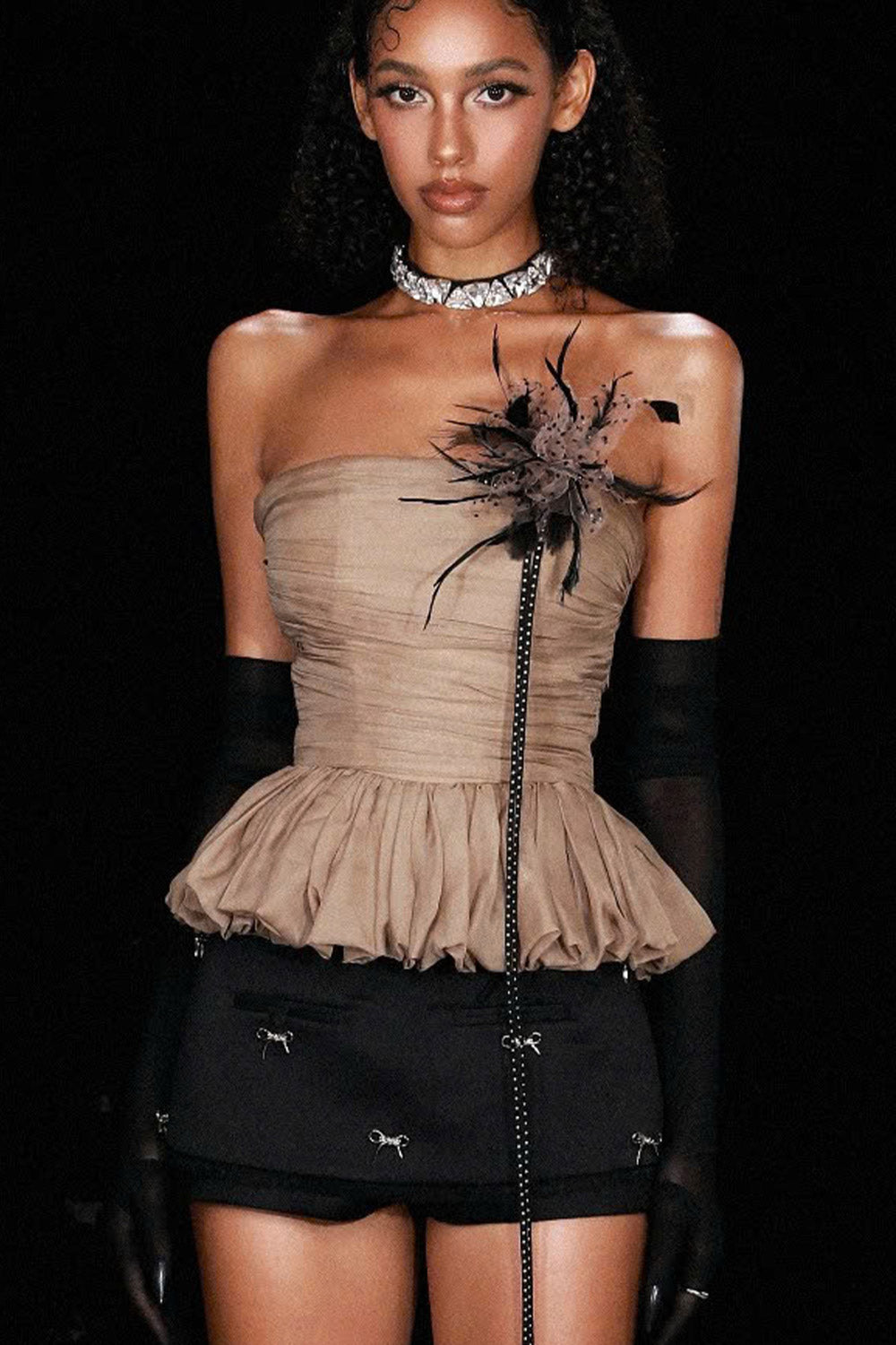 Luna Peplum Gathered Chiffon Top