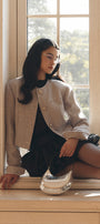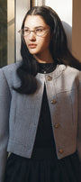 Refined and timeless, this straight silhouette tweed jacket with a classic round neck and regular sleeves exemplifies expert tailoring. Ideal for professional meetings, business lunches, or elegant evening events.