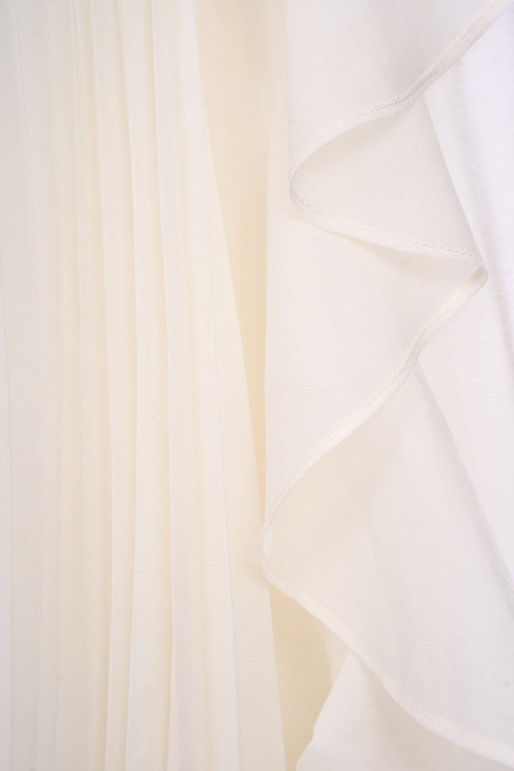Off-shoulder with ruffle trim, Pleated bodice, Silk lining top