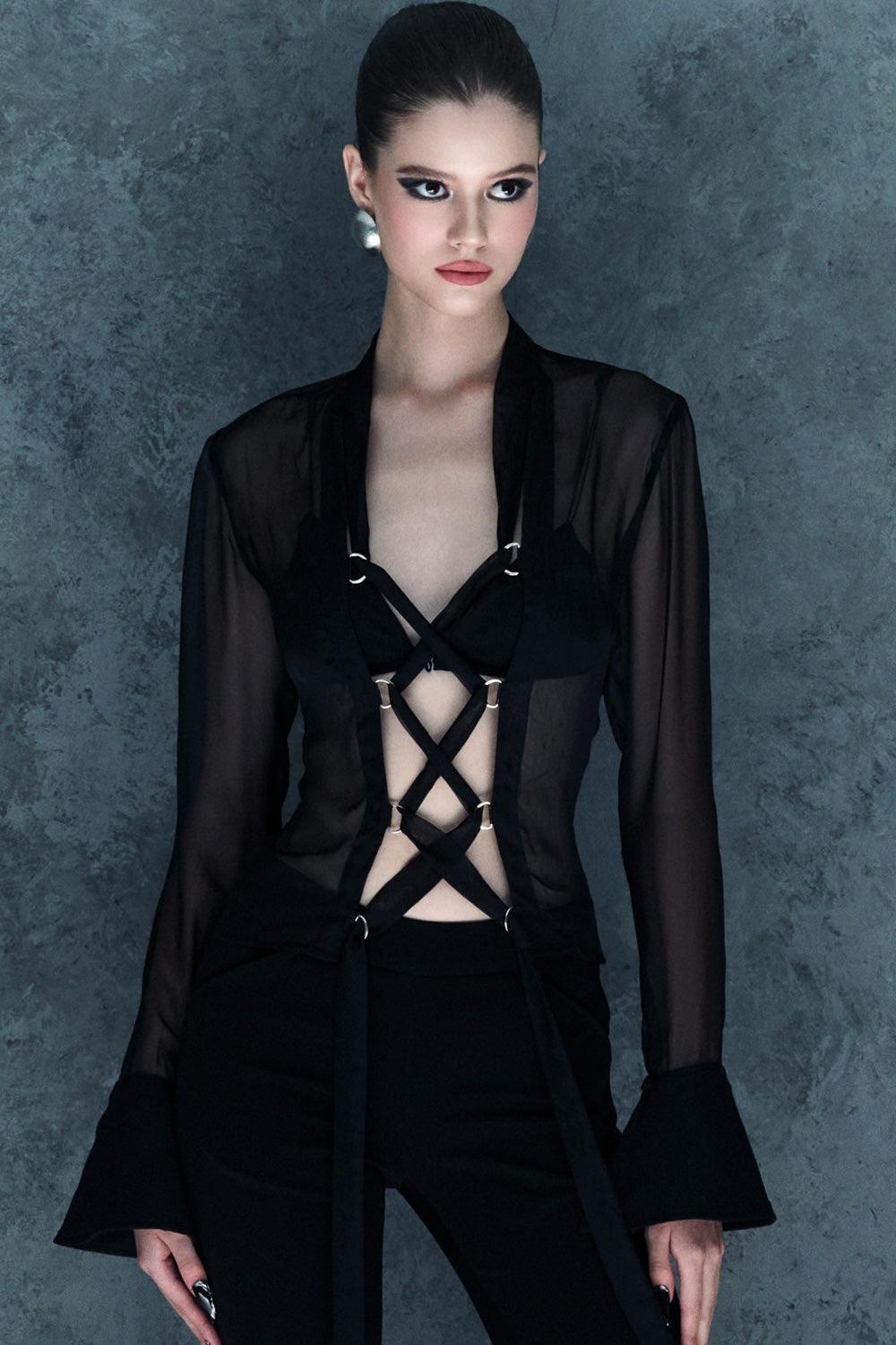 See-through design, Metal rings, Crisscross string on the front