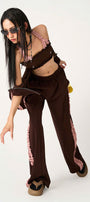 Sweetchoco Straight Ribbed Fleece Floor Length Pants