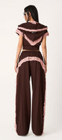 The pants combine comfort and sophistication with their straight-leg design and ribbed fleece fabric. These pants offer a relaxed yet refined fit, providing warmth and softness ideal for all-day wear. Their floor-length cut enhances a streamlined silhouette, making them a versatile choice for both casual and elevated looks.