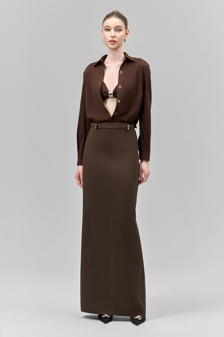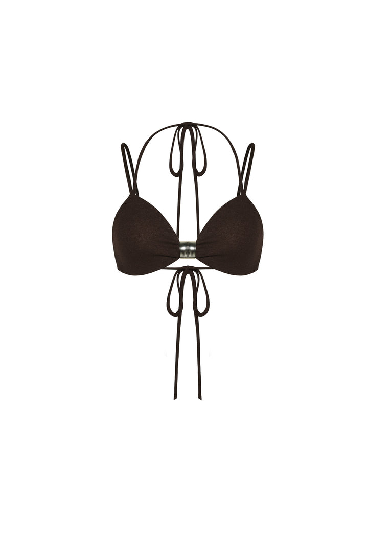 The bralette features delicate spaghetti straps designed for a minimal, lightweight fit. A metal pin detail at the center adds a refined, contemporary touch, enhancing both style and structure. Crafted from soft jersey fabric, this bralette offers breathable comfort while maintaining a sleek silhouette perfect for layering or wearing alone.