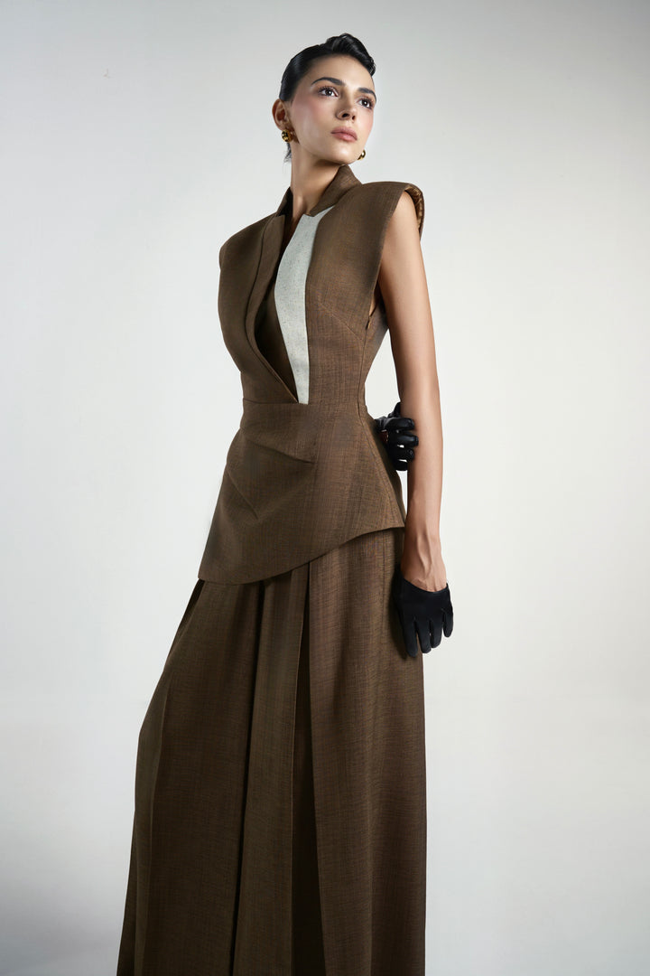 Elevate your wardrobe with the top, designed for a refined and polished look. Crafted from textured crinkle crepe fabric, it offers subtle sophistication and effortless drape. The sharp peak lapel enhances structure, making it ideal for professional or elegant occasions. This top combines classic tailoring with modern comfort, ensuring you look poised and confident throughout your day.